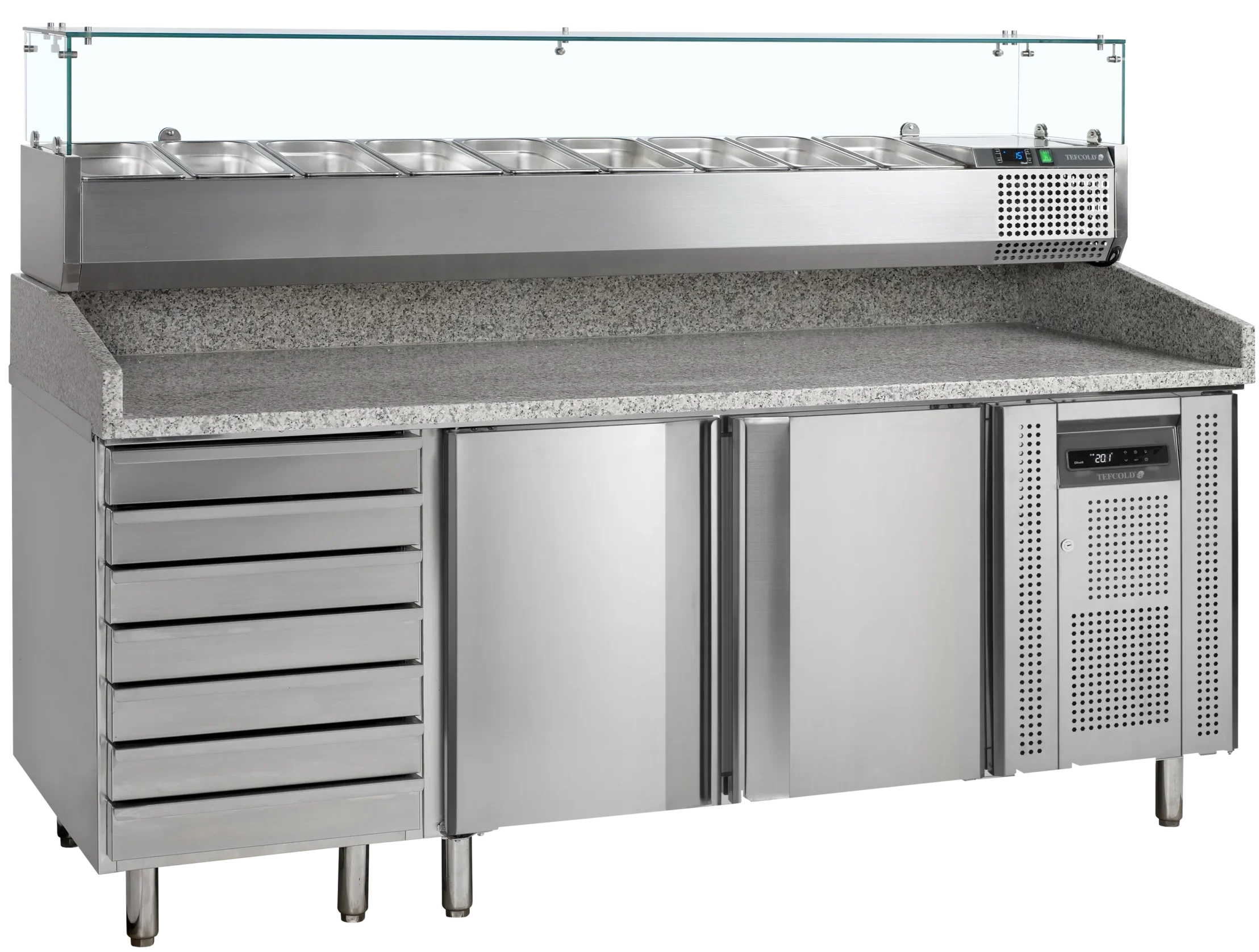 Met de pizzawerkbanken van Neo Horeca combineer je gekoelde opslag, ingrediëntendisplay en een ruim werkblad in één efficiënte oplossing. Ideaal voor het snel beleggen en voorbereiden van pizza’s tijdens drukke services. Duurzaam, hygiënisch en ontworpen voor maximale snelheid en overzicht in iedere professionele pizzeria.